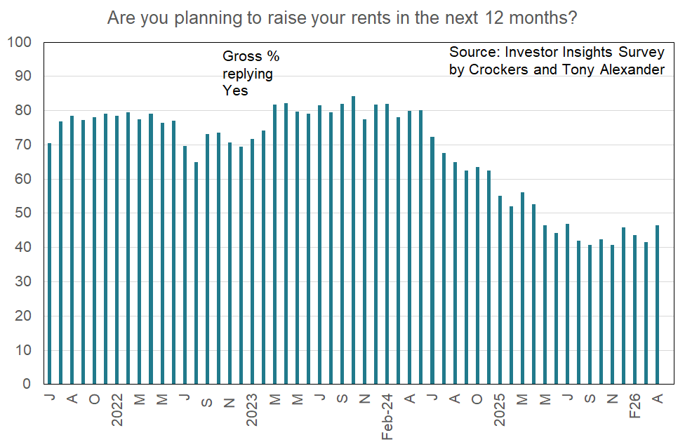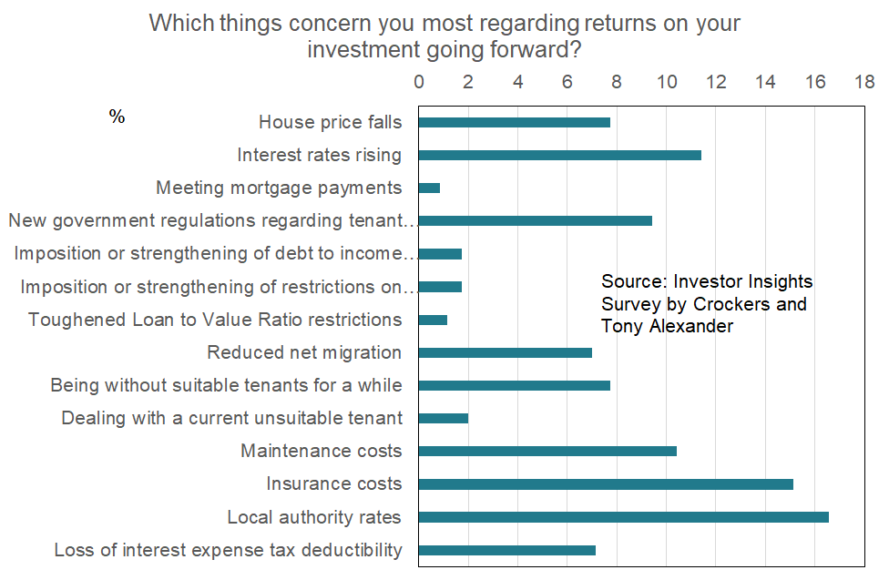 Welcome to the latest monthly Investor Insight survey compiled by Crockers Property Management and Tony Alexander. Each month we survey a selection of the many thousands of residential property investors on our databases with a view to gauging how things are changing over time across a wide range of indicators.